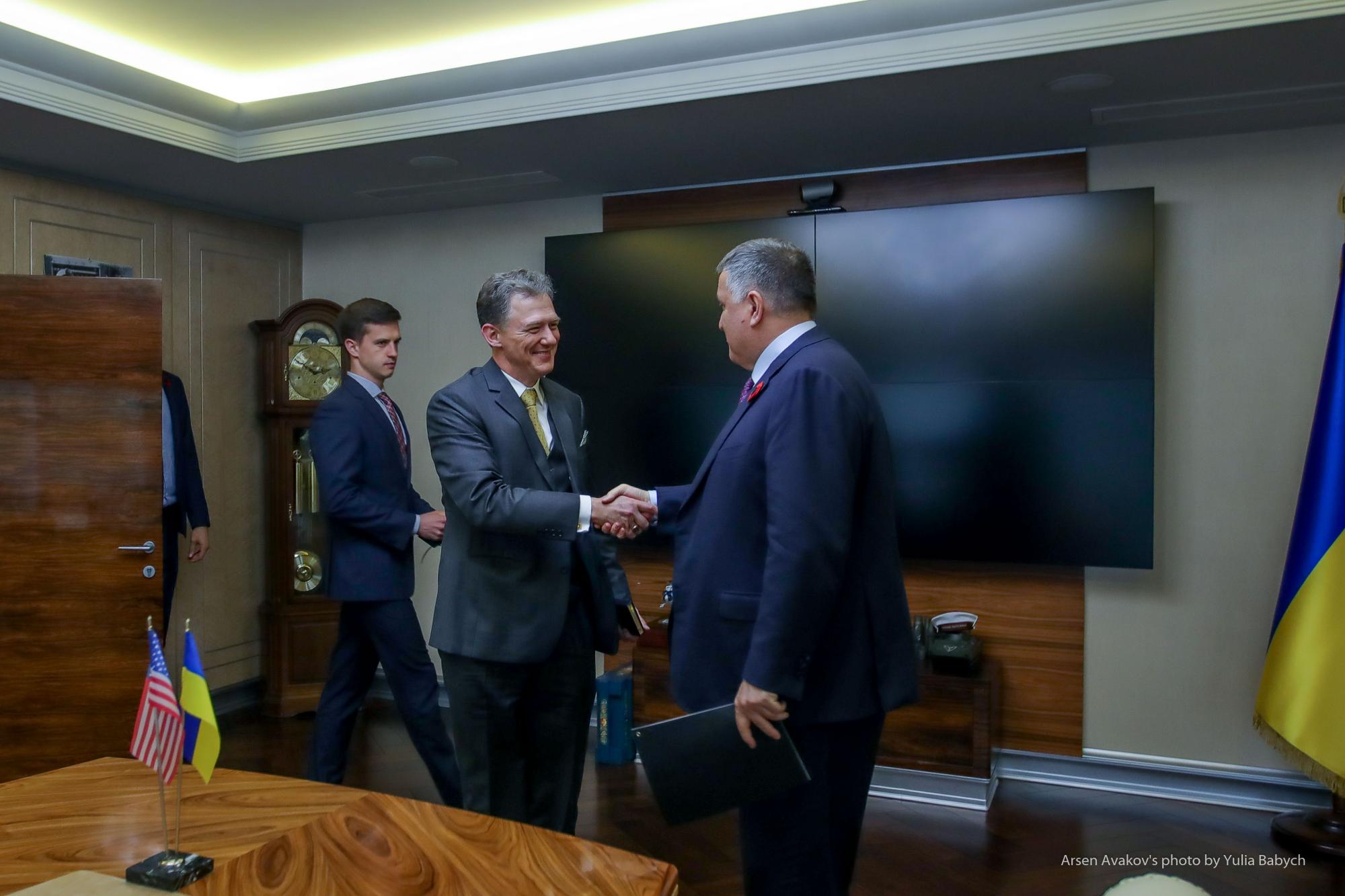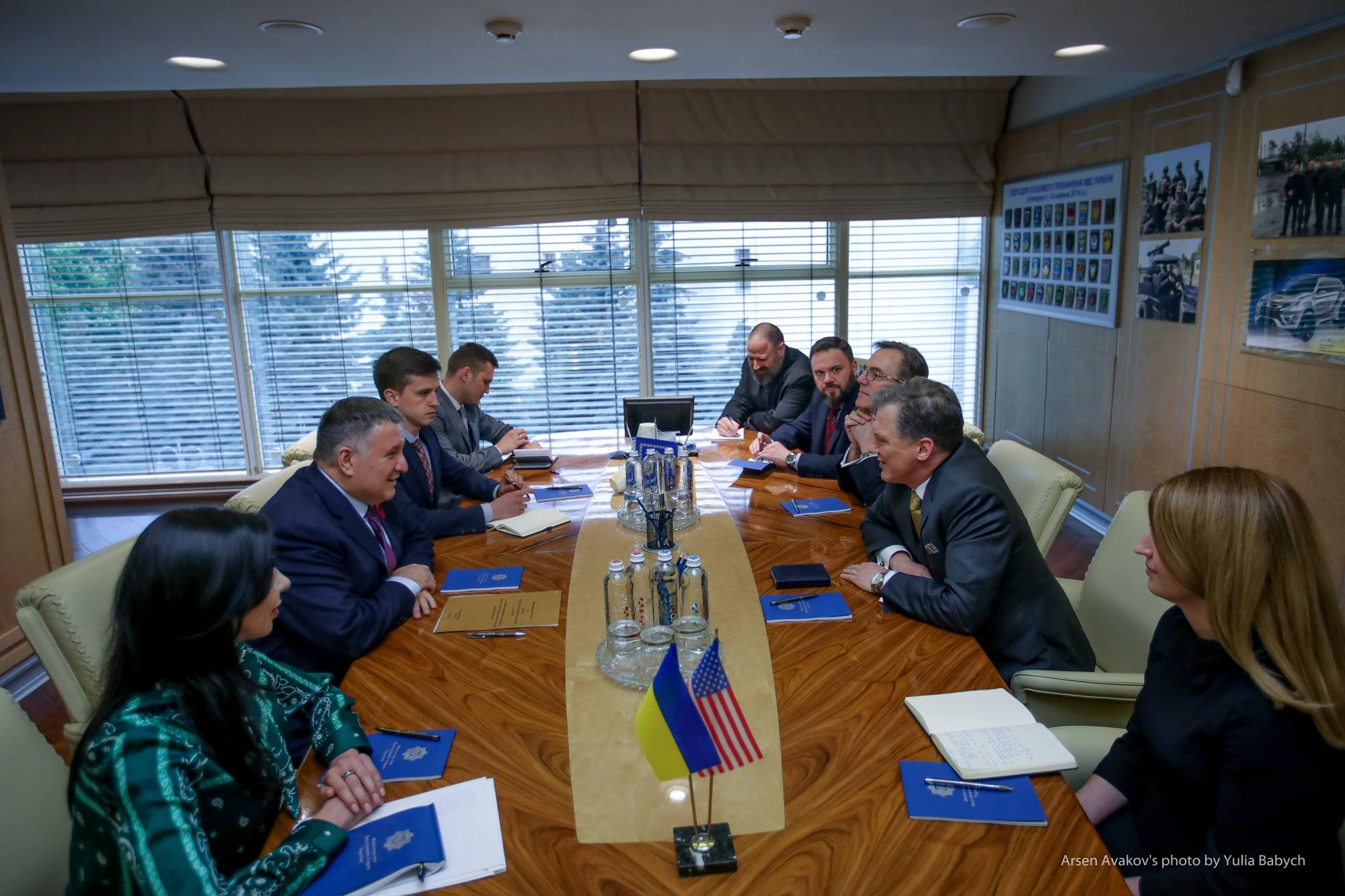 Сегодня, 8 мая, министр внутренних дел Арсен Аваков провел встречу с заместителем помощника Государственного секретаря США по вопросам Европы и Евразии Джорджем Кентом.