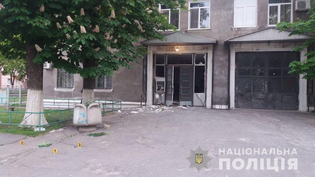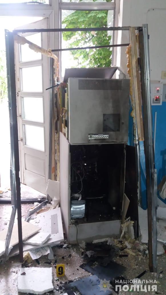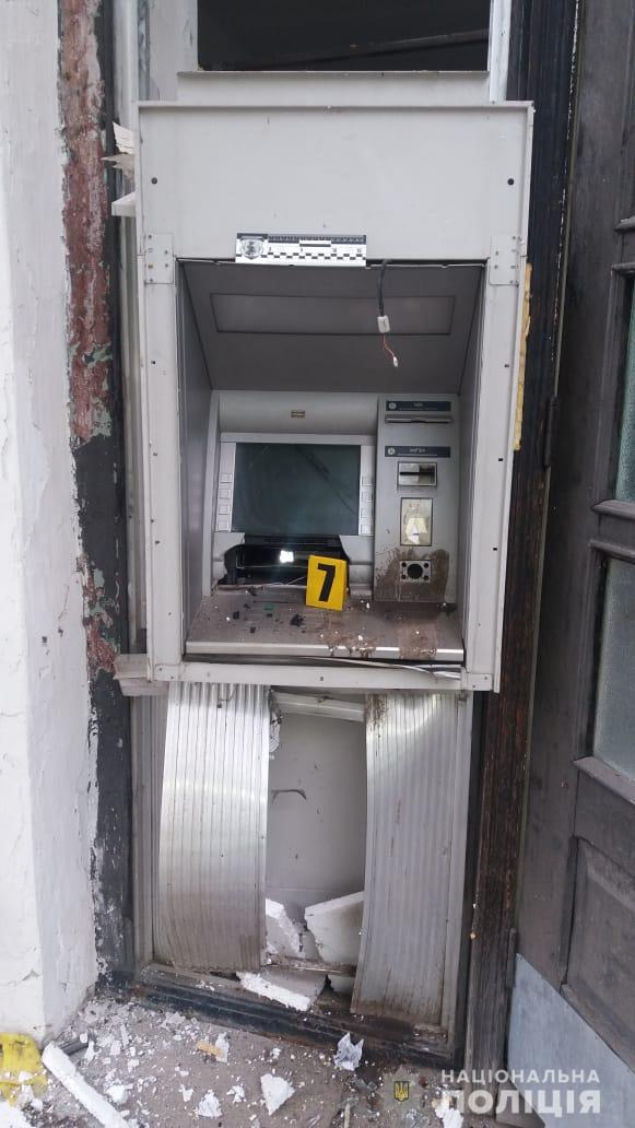 Оглядом встановлено, що всередині банкомату стався вибух саморобного вибухового пристрою, об'єднаного з підривником типу УЗРГМ. Пристрій був приведений в дію дистанційно з використанням велосипедного троса. Сам банкомат знаходився біля входу в будівлю колишньої пожежної частини. Речові докази вилучено.