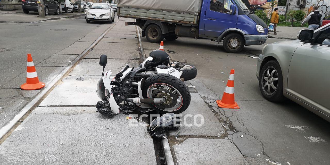 Легковушка двигалась по улице Константиновской в направлении Нижнего и Верхнего Валов, и в это время на перекрестке с улицей Юрковский неожиданно выскочил мотоциклист.