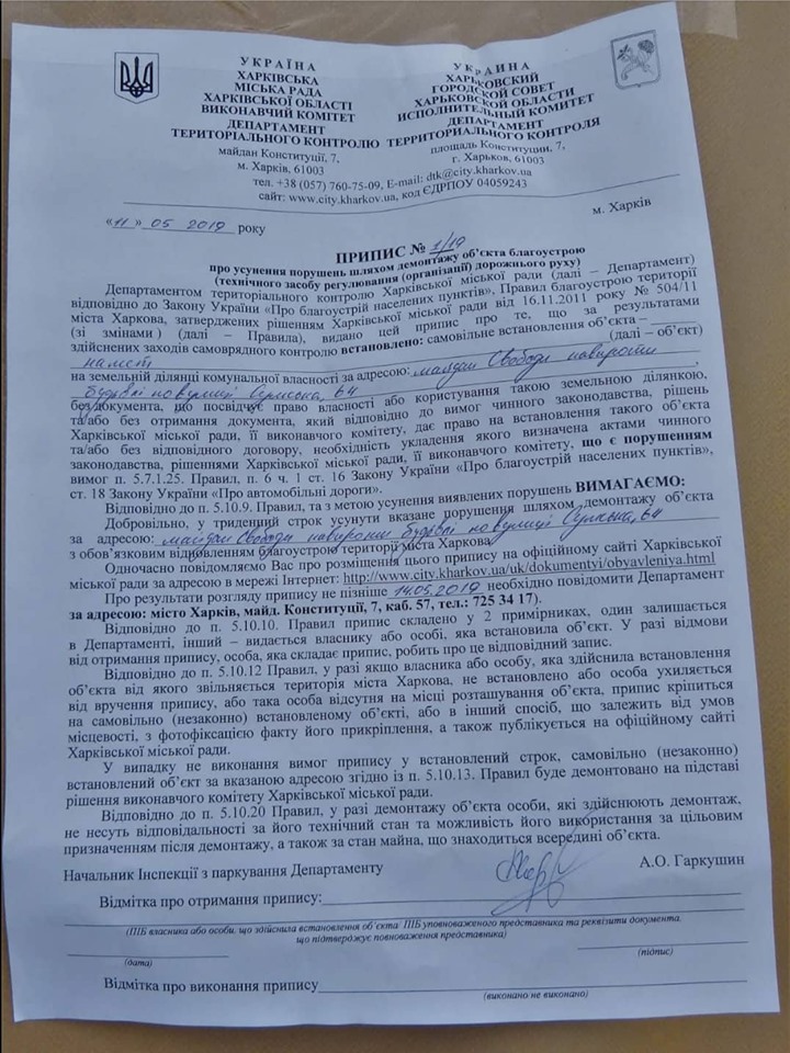 2) Кернесятко, мавпа на колесиках, пішло у наступ. Мабуть, куля в сраці спокою не дає. Це його помста за Леніна. Часи вже не ті, свинолупе чмо. Ми тебе скоріш не кулю в дупу, ми тебе на атоми розкладемо, множитель на нуль ти довбаний.На усяк випадок, хто не знає про що припис. Він про те, що намет заважає дорожньому руху і встановлений без погодження з органами Національної поліції. Здається, юридично Гепрада не може апелювали до земельних правовідносин, і знести те, що стоїть на дорозі, не може інакше, ніж визначити його "засобом регулювання дорожнього руху". От і напружилися.