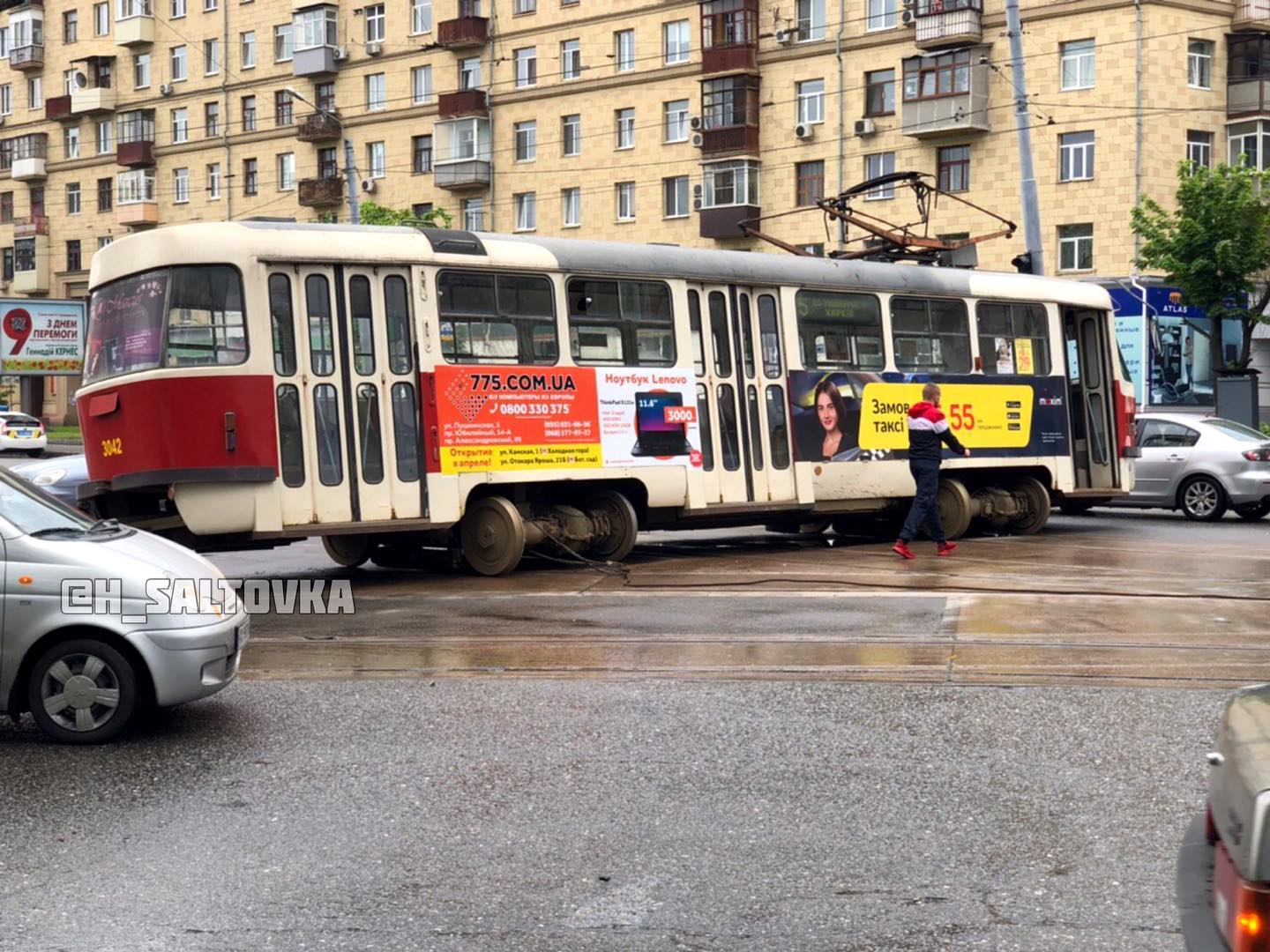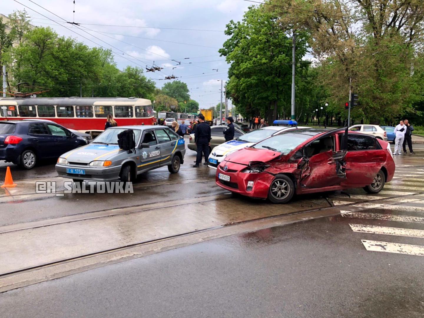 Участниками проишествия стали трамвай №5 и автомобиль Тoyota.