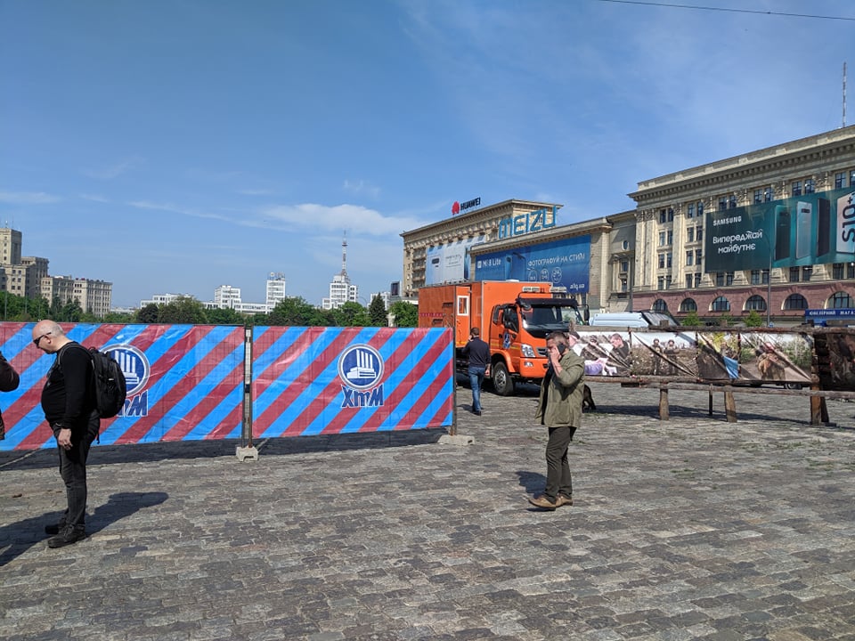 Сегодня утром на площади Свободы сотрудники КП “Харьковские тепловые сети” попытались установить ограждение в районе волонтерской палатки “Все для победы”. Об этом сообщает МГ “Объектив” с места события.