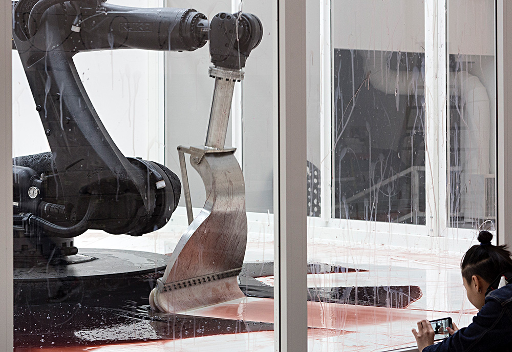 Творческий дуэт из Китая, авторы снятого с показа в Музее Гуггенхайма видео «Собаки, которые не могут коснуться друг друга», на биеннале представил робота, с жутким механическим звуком собирающего с пола похожую на кровь жидкость. У него останавливаются и надолго задерживаются толпы зрителей, равно как и у второго произведения арт-дуэта в Арсенале — мраморного трона с дергающимся хлыстом.