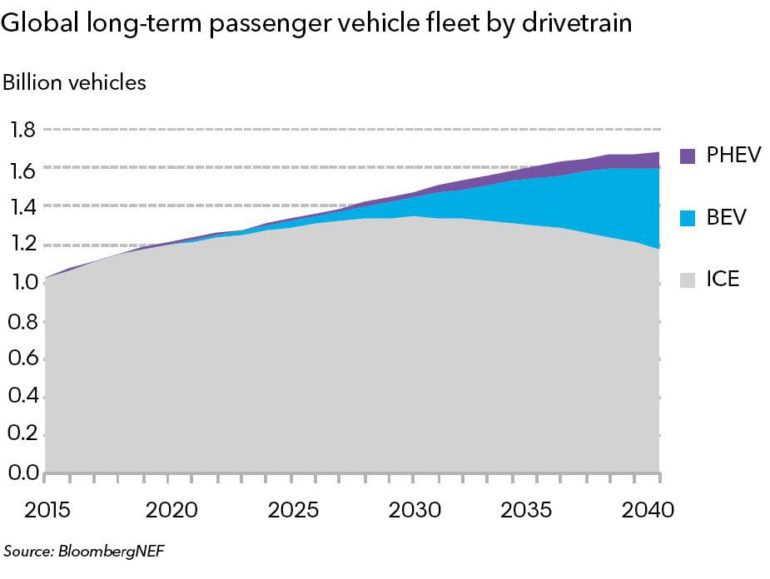 Представители Bloomberg NEF прогнозируют, что уже к 2040 году на дорогах мира будут находиться 500 млн пассажирских и 40 млн коммерческих электромобилей. При этом ДВС-модели по-прежнему будут занимать большую часть мирового автопарка, а снижение их суммарного количества не наступит ранее 2030 года.