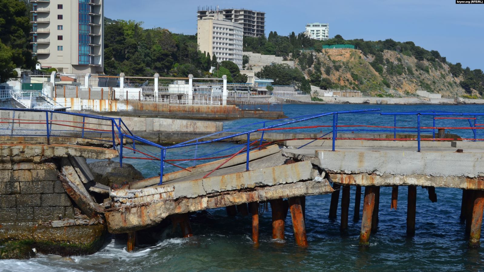 На пляже "Русалка" в Мисхоре обвалился причал для швартовки катеров и теплоходов для прогулок