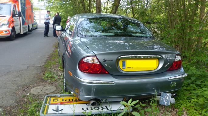 Похоже, итальянец был настолько озадачен своей ошибкой, что выйдя из своего автомобиля не закрепив ручной тормоз. Машина откатилась назад, сбила водителя и ударилась о дорожный знак.