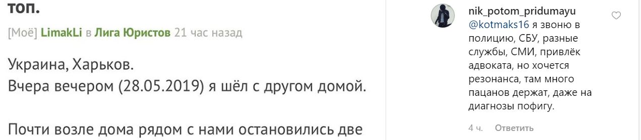 Если кто-то может мне чем-то помочь (позвонить в полицию, СБУ, скинуть пост в правозащитные Харьковские организации) я был бы очень благодарен