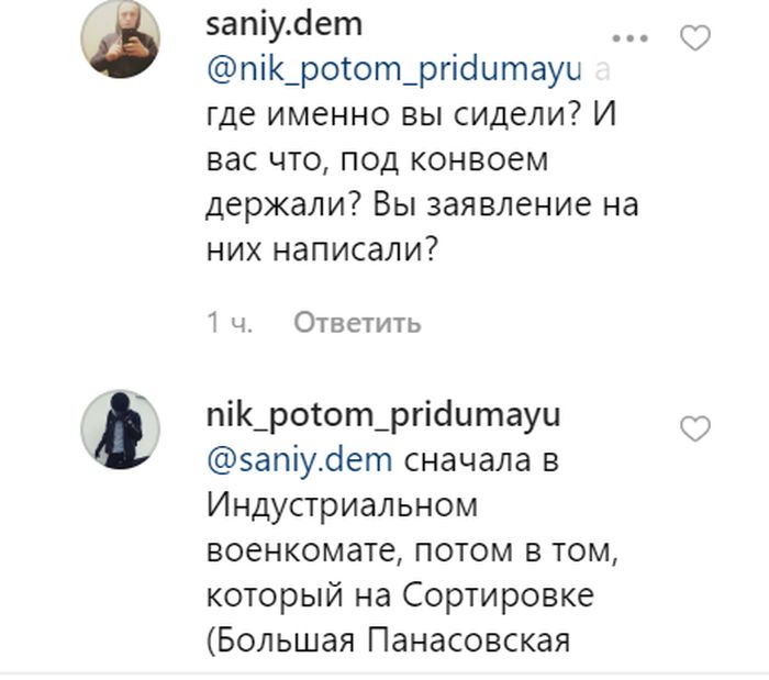 Об этом в комментарии к своему посту написал похищенный военкоматом в Харькове Камил Алиев.