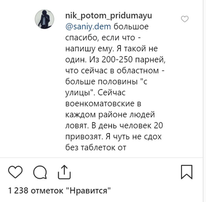 Меня уже почти сутки держат в военкомате. Условия тут ужасные. Была возможность поесть один раз за сутки, но я ничего не ел - обострился гастрит, меня тошнит.