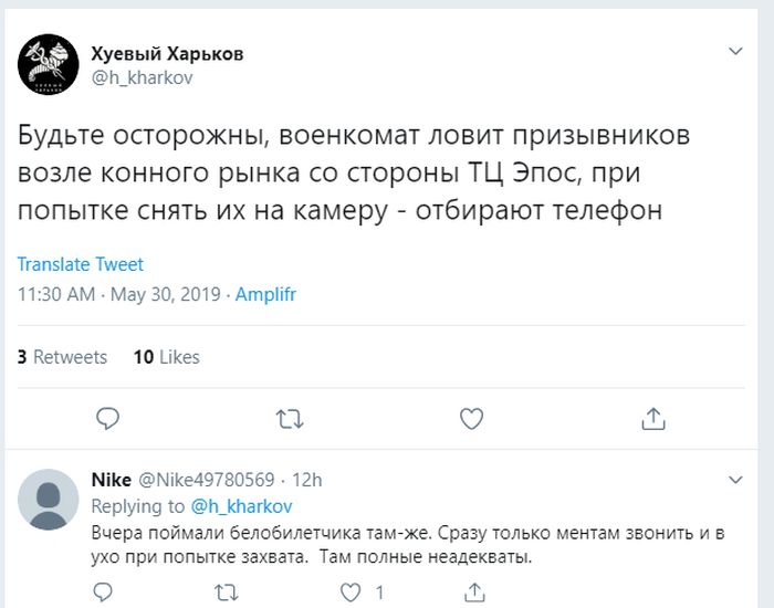 Примечательно, что облавы дают прекрасный информповод кремлевским СМИ и террористам ОРДИЛО. Так ряд российских и сепаратистских СМИ уже опубликовал историю, которая якобы произошла в Харькове. Утверждается, что фигурирующий на видео молодой человек, сбежал от харьковских военкомов, которые пытались заставить явного противника Украины служить в ВСУ.