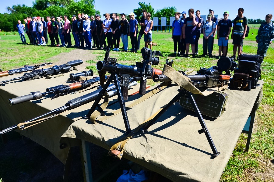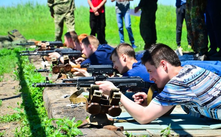 В рамках проекта старшеклассников возят на военные полигоны, где их учат стрелять из автоматов и обращаться с оружием.