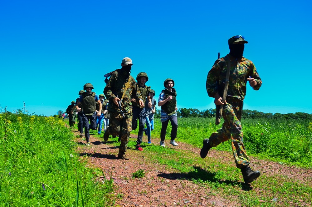 Так, старшеклассники проходят военную подготовку с 28 по 31 мая во всех городах, подконтрольных боевикам. Ее организовала организация «Донецкая республика», которую возглавляет главарь боевиков Денис Пушилин.