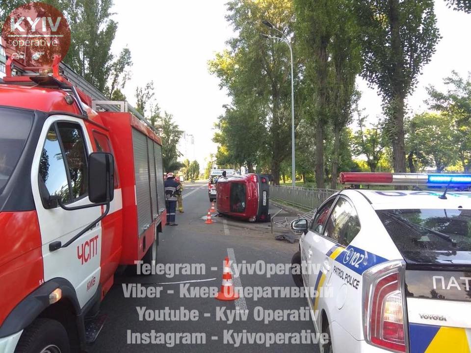 ДТП с опрокидыванием произошло в Киеве на Русановской набережной.