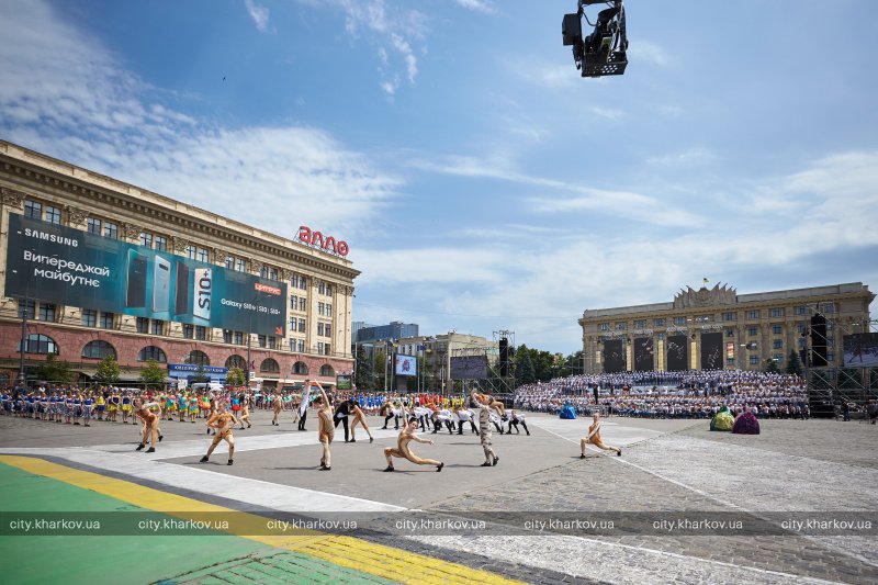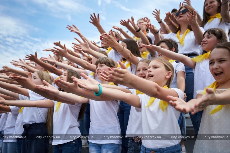 На сцене и всей площади выступили более 4 тысяч ребят - учащиеся школ эстетического воспитания и общеобразовательных школ, участники хореографических коллективов, спортсмены - победители международных чемпионатов, велосипедисты, черлидеры, гимнасты, а также хоровые коллективы из восьми городов разных регионов Украины: Ужгорода, Киева, Хмельницкого, Мелитополя, Одессы, Бахмута, Тернополя, Доброполья. На многометровой сцене, вместе с профессиональным оркестром «Prime Orchestra», несколько детских хоров исполнили украинские и мировые музыкальные хиты. А всю площадь заполнили танцоры и спортсмены, объединенные одновременным исполнением театральной постановки.