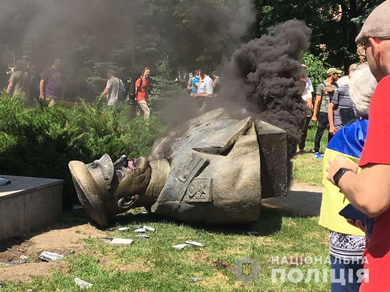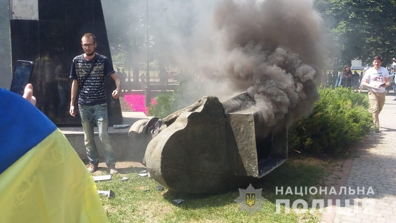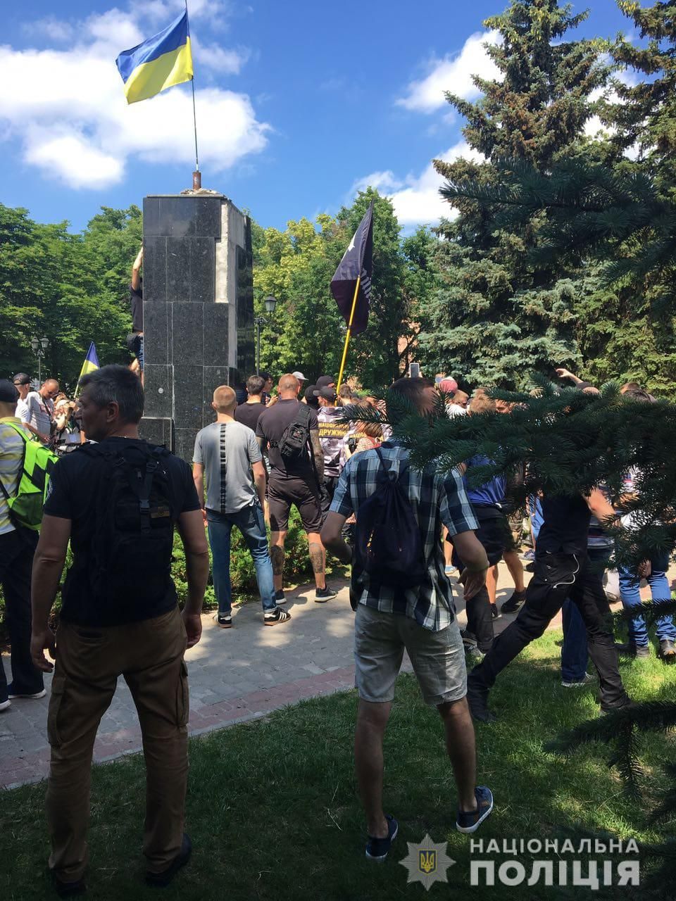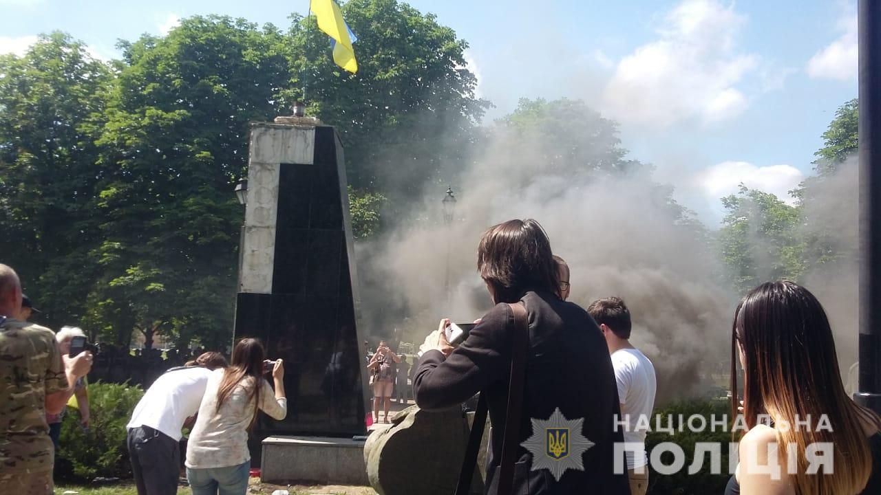 Також під час заходів група невідомих розпилила сльозогінний газ. Троє співробітників поліції, які несли службу та забезпечували правопорядок біля пам’ятника, отримали хімічний опік очей та були доставлені до лікарні.