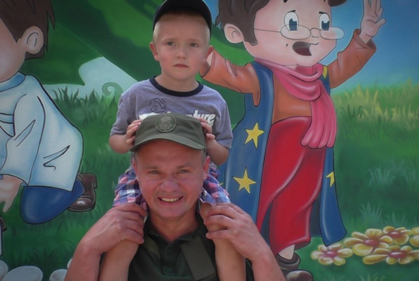 «Настрій бадьорий, що в мене, що в сина. Все заради нього. Він характером в мене вдався. Звати його Іван. Все любить руками робити, каже, що буде ремонтувати автомобілі, як виросте», – розповів гвардієць Сергій Писарєв, що його синок Іван тут же і підтвердив, мовляв скоро навчиться справляти всі ці танки та БТР і буде працювати з батьком.