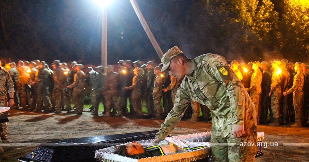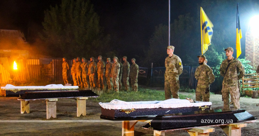 Командир третьої роти «Азову» Раз-Два, під командуванням якого служили друг Круглий та друг Максон, нагадав присутнім, що метою полку є повна перемога над ворогом, і саме заради неї загиблі готові були йти вперед: «Третя рота і «Азов» загалом сьогодні втратили не просто бійців, а насправді людей, які готові були до кінця йти і слідувати своїм ідеям. Це люди, яких не можна було стримати десь на тилових базах чи десь на цивілці, вони завжди хотіли йти вперед. Друг Круглий завжди був надійною опорою не тільки для мене, як для командира, а й для кожного бійця роти. До нього можна було підійти, поговорити на будь-яку тему, він завжди давав потрібну пораду та розбирався у ситуації. Друг Максон – боєць, якого ми теж згадуватимемо із гордістю, адже він стояв з нами пліч-о-пліч. Ми помстимося за них. Обов`язково!»