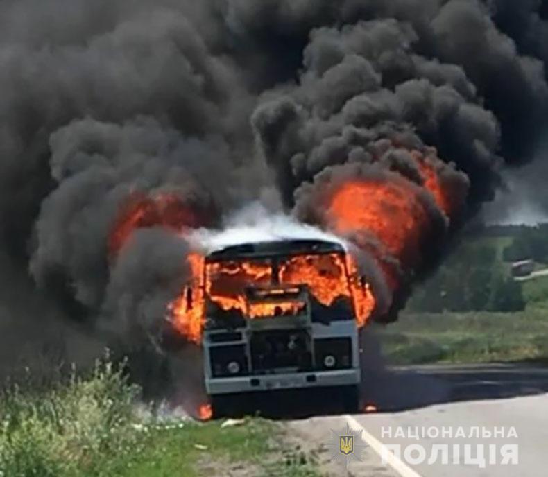 У автобусі їхали 25 пасажирів. Всі встигли швидко залишити салон та відійти на безпечну відстань. Потерпілих немає. Транспортний засіб вигорів майже дощенту. Попередня версія - замикання електропроводки.