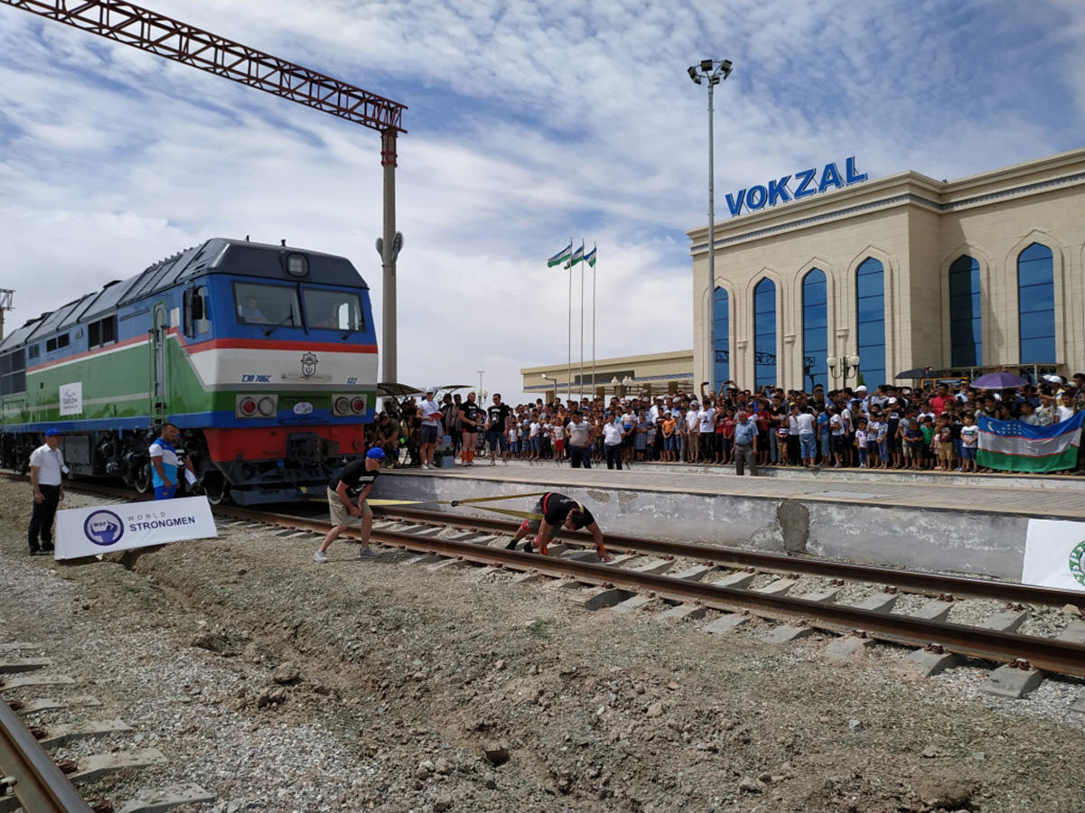 Во второй день соревнований богатыри испытали свои силы в тяге тепловоза на железнодорожном вокзале Хивы. Не каждый богатырь смог выполнить это сложное упражнение. Ибо непросто сдвинуть с места локомотив весом почти 160 тонн. Участники состязались также в подъеме и перетаскивании "Муйнакского якоря" весом 270 килограммов, привезенного с "Кладбища кораблей" в Аральском море, удержании "Хивинских столбов", а также устойчивом удержании мечей "Джалолиддина Мангуберди" и "Амира Темура", каждый из которых весит 20 килограммов.