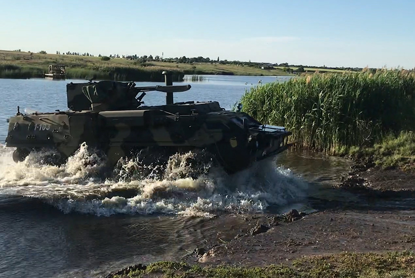 Також на навчання були запрошені курсанти та викладачі Національної академії НГУ. Їм було показано роботу БТР-4 під час подолання водної перешкоди.