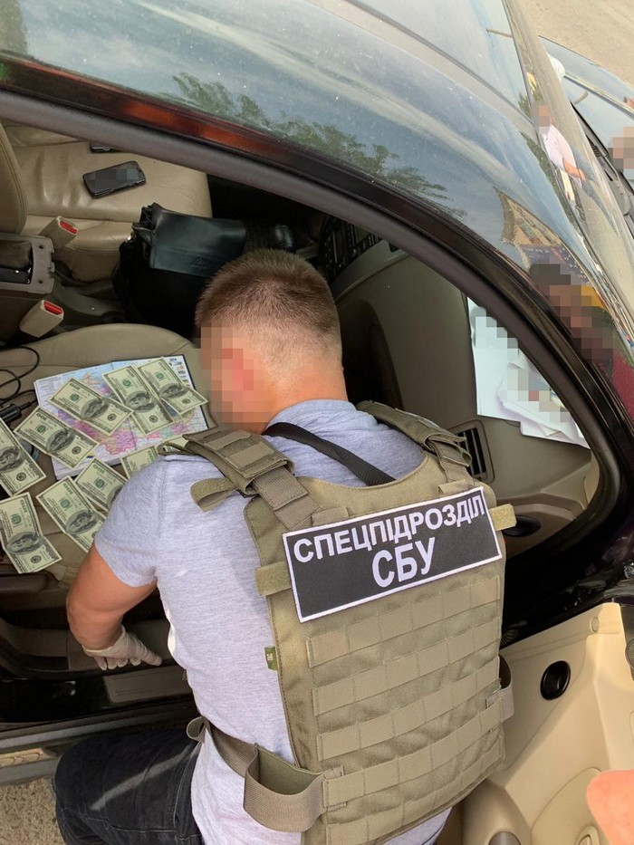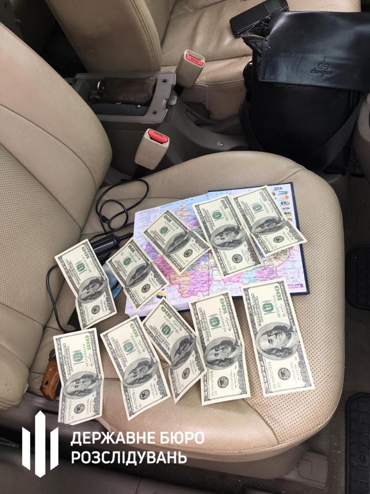 Слідчими ДБР проведені невідкладні слідчі дії, серед яких обшук автомобіля затриманого. Предмет неправомірної вигоди знайдено та вилучено.