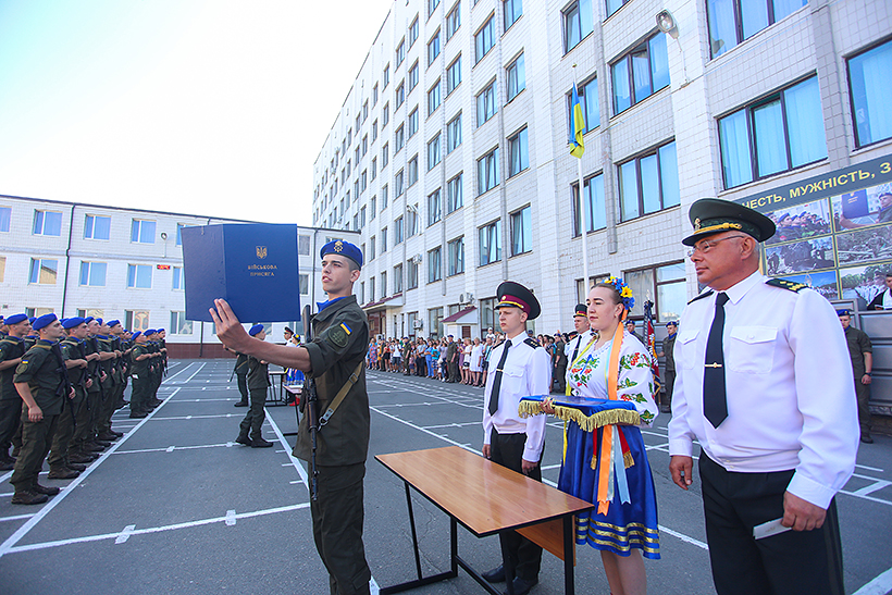 «Це важлива подія та відповідальний крок у житті, ви починаєте військову службу. Ви присвячуєте себе службі українському народові. Сердечно вітаю вас з цією знаменною подією, щиро бажаю вам міцного здоров’я, мужності, наснаги та відданості Батьківщині. Хай вам щастить!», - привітав присутніх начальник Академії генерал-лейтенант Сергій Соколовський.