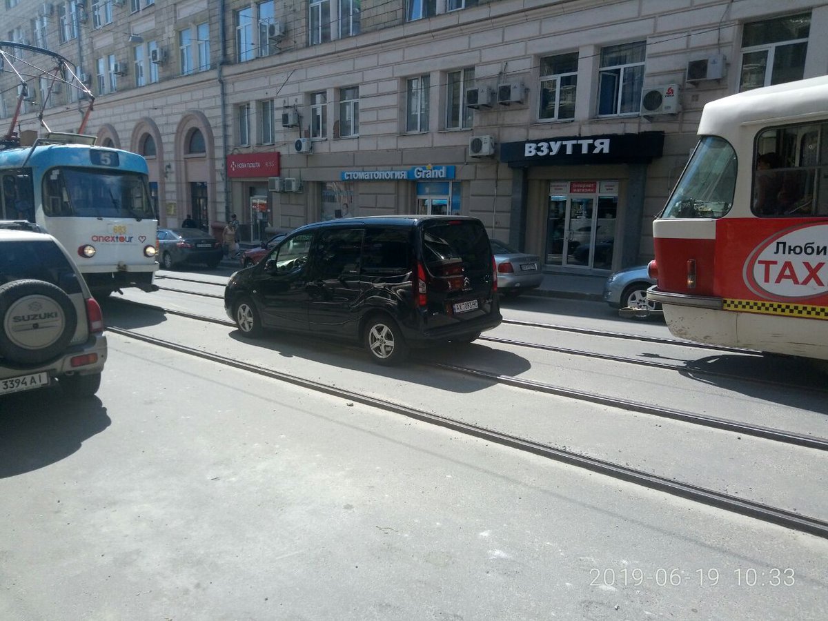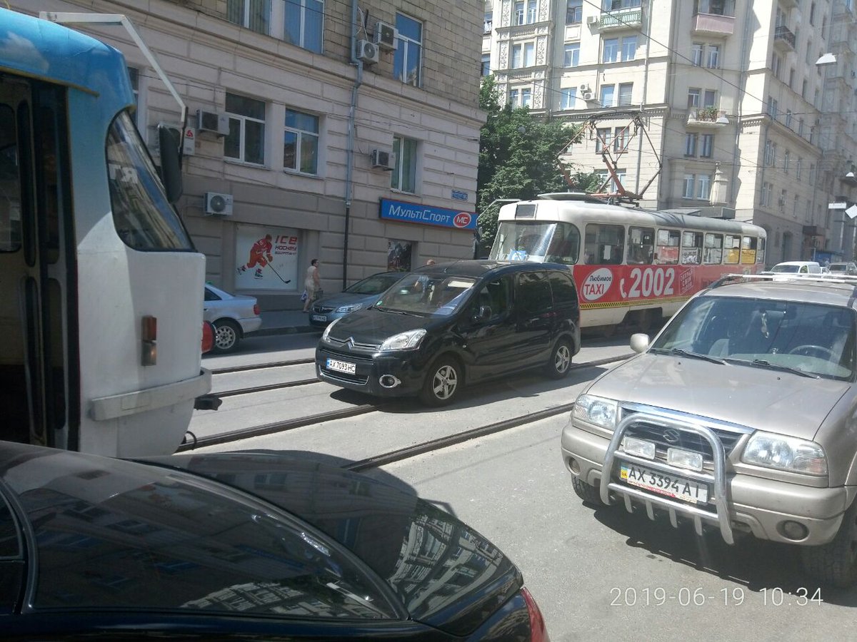 В центре Харькова, около 10:30 сегодня, неизвестный "запарковал" свой "Ситроен" посредине Московского проспекта, чем блокировал движение трамваев в обе стороны.