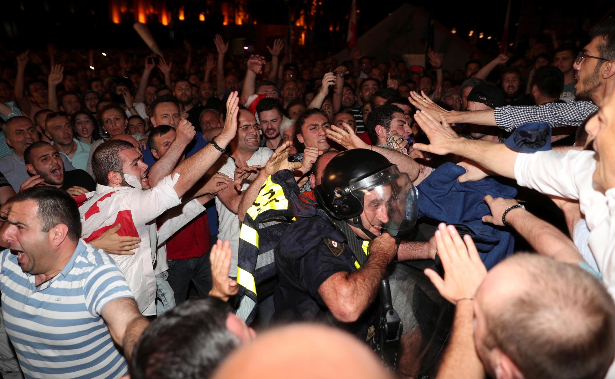 В ночь на 21 июня грузинская полиция применила против активистов слезоточивый газ, водометы и резиновые пули для разгона демонстрации у здания парламента в Тбилиси