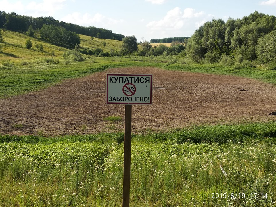 Единственное, что напоминает о том, что некогда в озере была вода – небольшая табличка «Купаться запрещено».