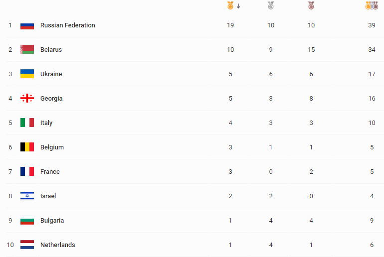 С 17 наградами сборная Украины вышла на третье место в общем медальном зачете Европейских игр.