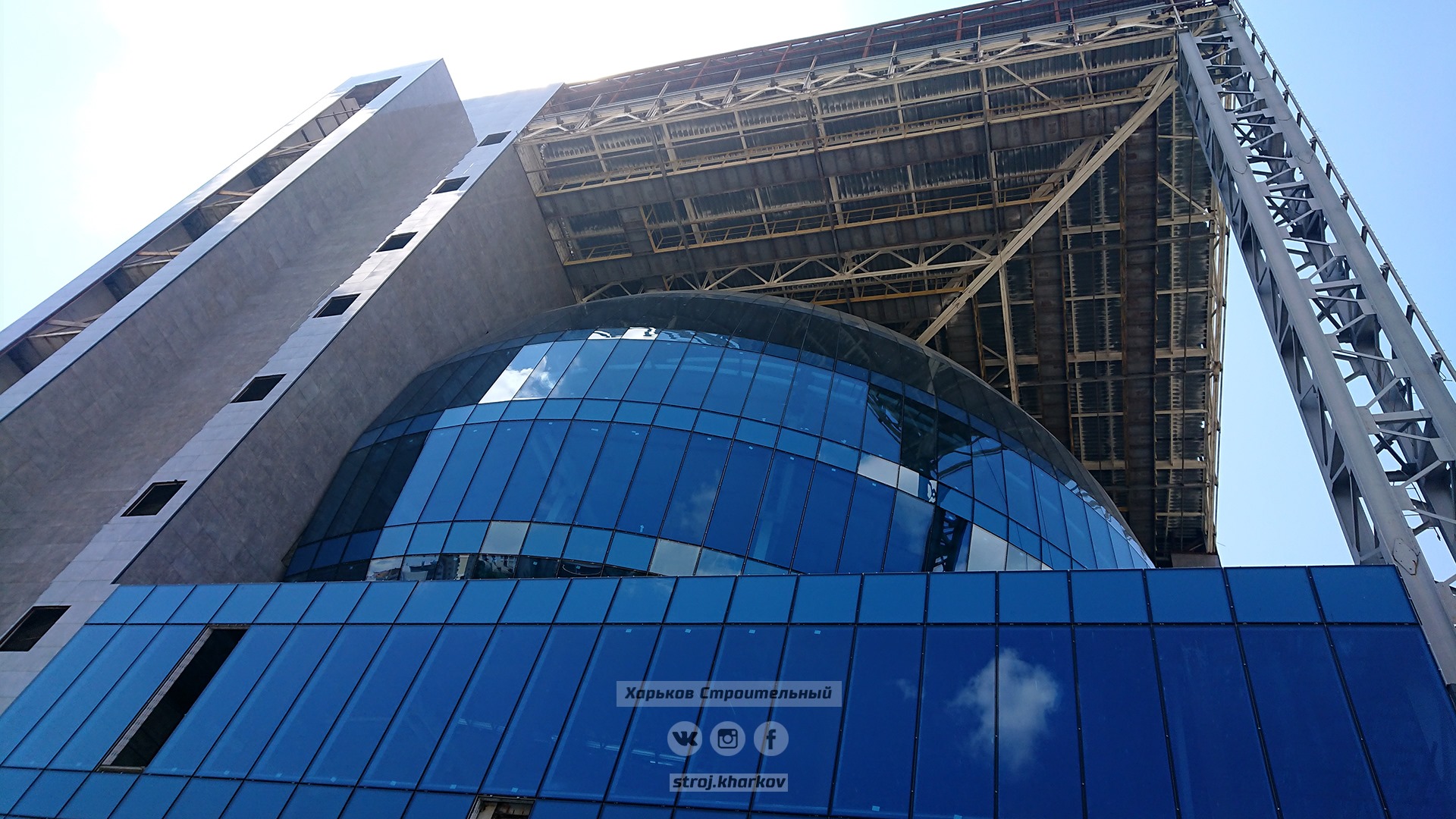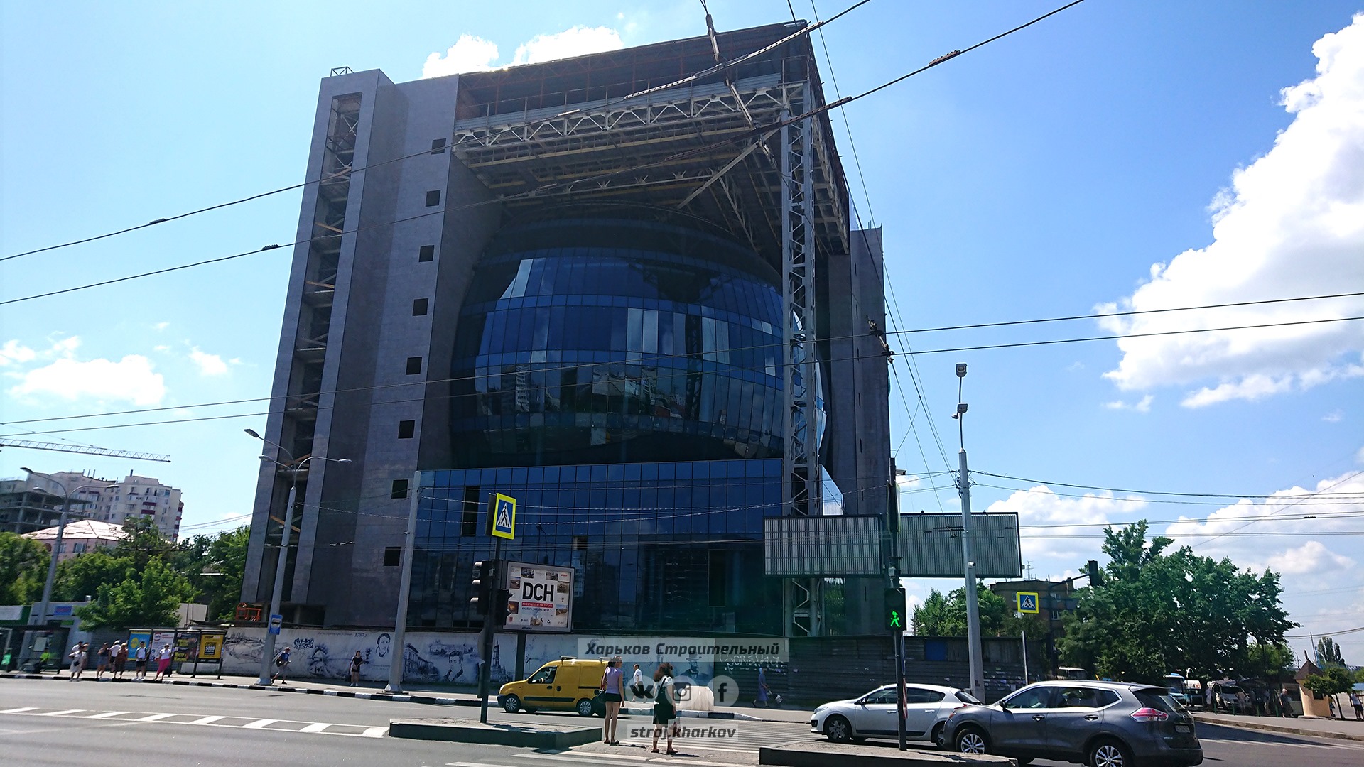 В Харькове строительство торгово-экспозиционного центра с офисными помещениями "Шар в кубе", который расположен по адресу проспект Гагарина, 24-д должны закончить предположительно в октябре 2019 года.