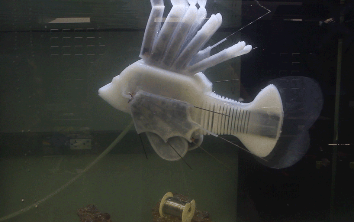 Но робототехники, кажется, нашли решение этой проблемы, отмечает nature. Вместо использования гидравлической жидкости, которая обычно циркулирует внутри машин для перемещения их частей, команда из Корнеллского университета в Итаке, Нью-Йорк, использовала аккумуляторную жидкость, которая питала робота, а также приводила в действие насос для перемещения плавников, заставляя рыбу плавать.