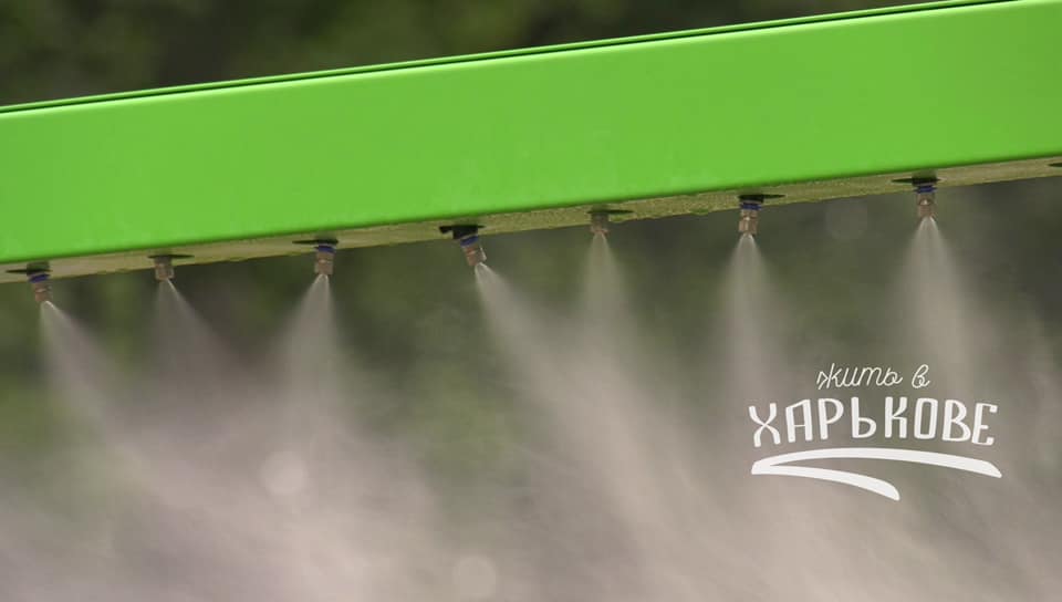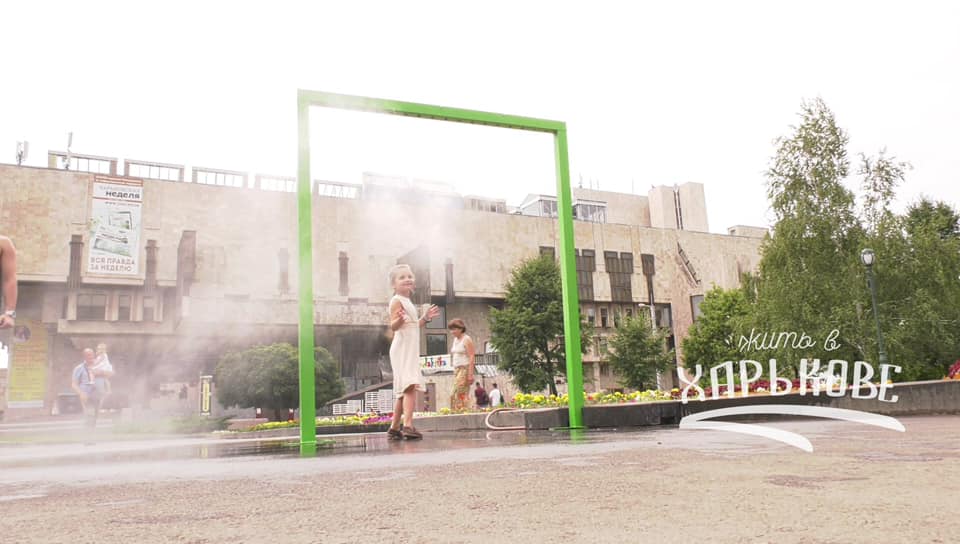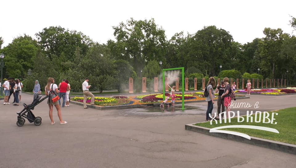В Харькове в саду Шевченко установили охлаждающие рамки, проходя через которые, можно немного освежиться.