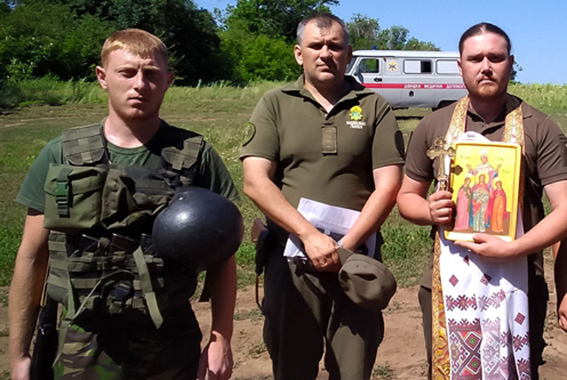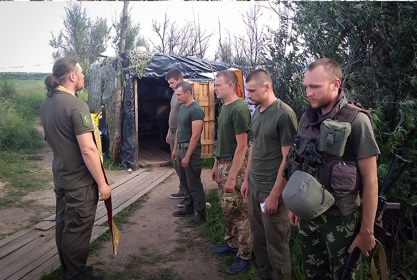 «Ми ніколи не приїздимо до вояків з порожніми руками, якщо вони чекають на Боже Слово. Наразі приїхали з полковою[Слов’янського полку] іконою «Віри, Надії, Любові та їх матері Софії». Ікона писана в грецькому стилі львівськими майстрами, та була передана спеціально для бійців, які боронять нашу землю на сході України», – розповів військовий капелан військової частини 3035 отець Діонісій.