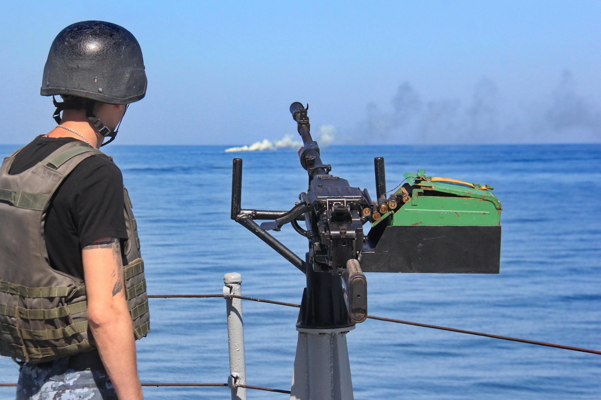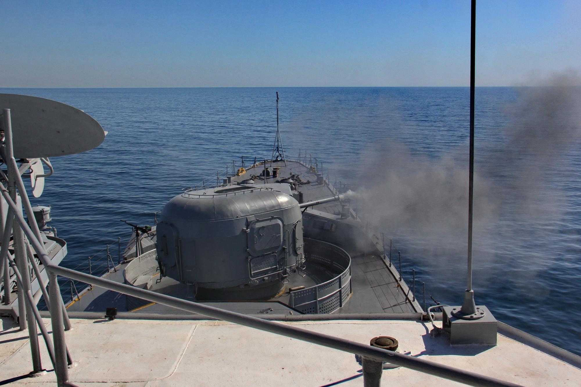 Экипаж фрегата "Гетман Сагайдачный" провел учения в северо-западной части Черного моря в условиях, приближенных к боевым.