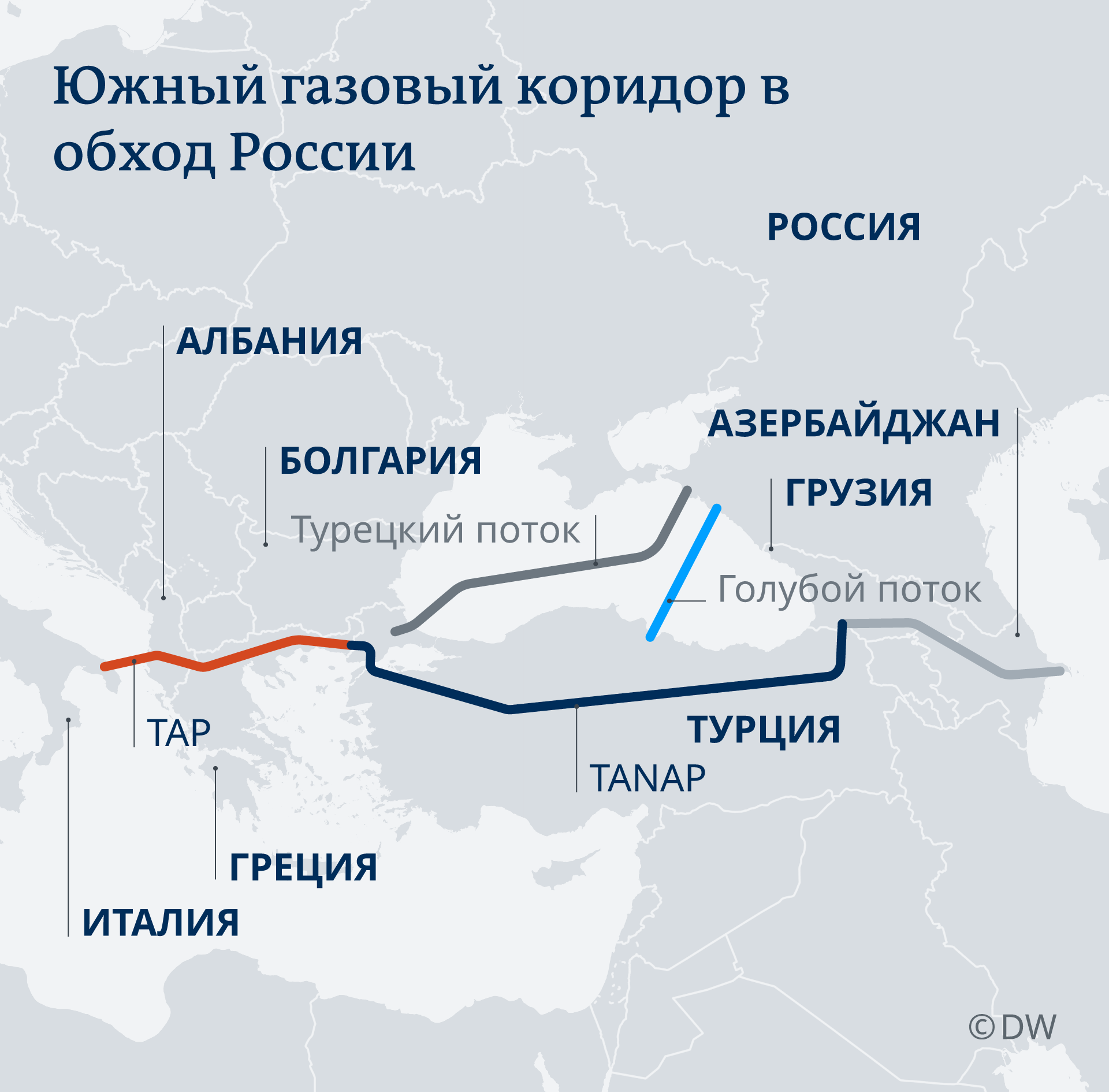 Южный газовый коридор с трубопроводами TANAP и TAP поддерживает Европейский Союз, стремящийся диверсифицировать источники и пути доставки природного газа на свой рынок и тем самым снизить зависимость от России. Так что эта транспортная система в любом случае представляет собой конкурента газопроводам "Газпрома". Вопрос лишь в том, насколько острой окажется эта конкуренция.