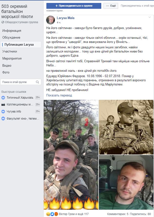 Умер в Харьковском госпитале от ранений, полученных в результате вражеского обстрела на позиции вблизи поселка Водяное под Мариуполем, отмечает пресс-служба воинского подразделения.