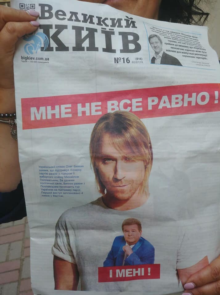 Украинский певец Олег Винник поддерживает Аграрную партию Украины и вместе с лидером этой политической силы Михаилом Поплавским (первый номер списка на выборах в Верховную Раду) начинает тур по стране.