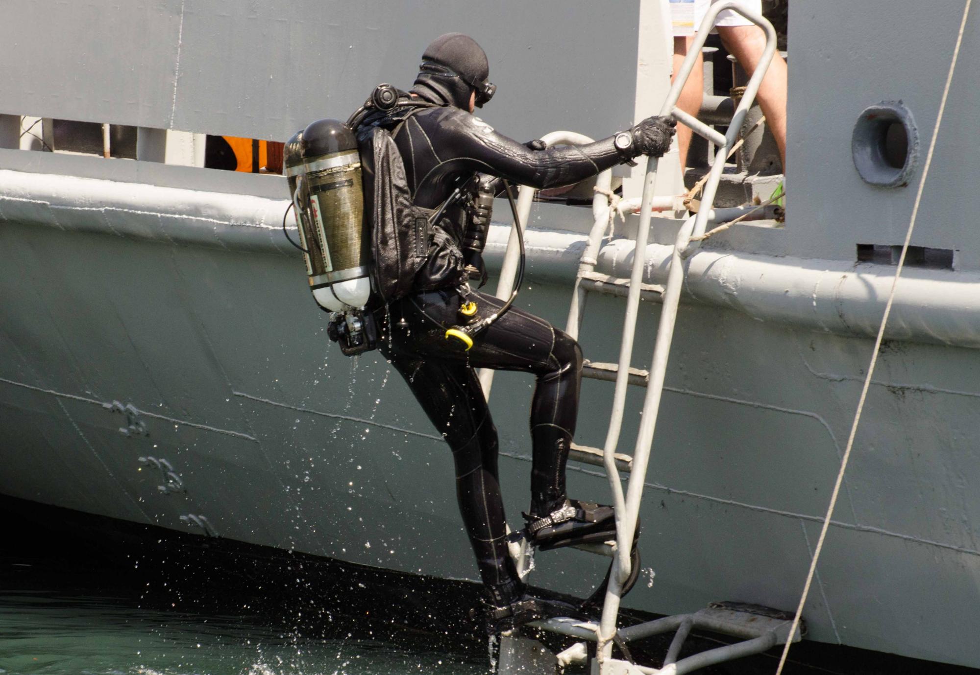 — Наразі ми отримали чудову можливість навчитися працювати на новітньому водолазному обладнанні, щоб у майбутньому, сподіваюся, уже використовувати його у своїй повсякденній діяльності, — наголосив капітан 1 рангу Олексій Нестеров.
