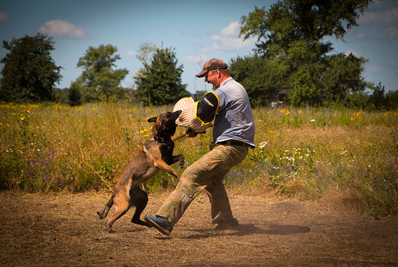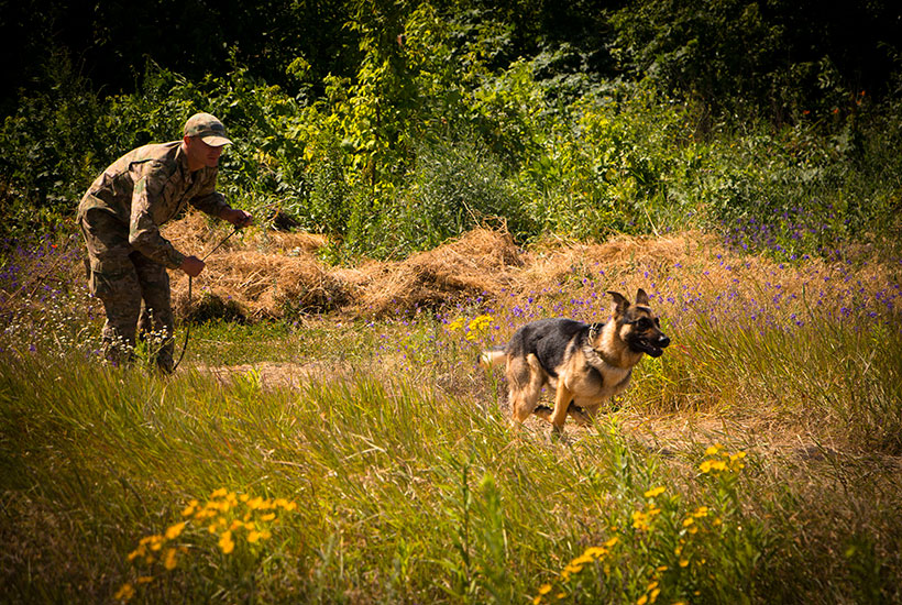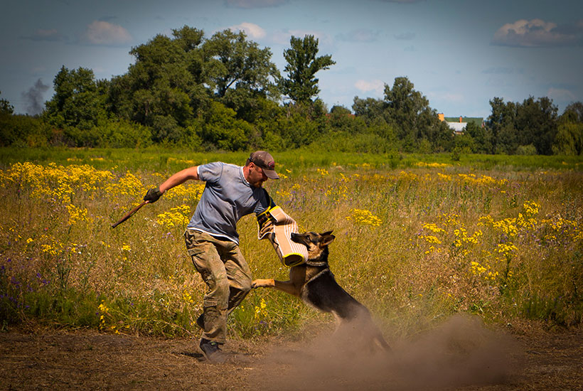 Службовий собака за командою свого наставника зривається і летить начебто куля, щоб зупинити злочинця, який чинить опір, навіть із застосуванням стрілецької зброї.