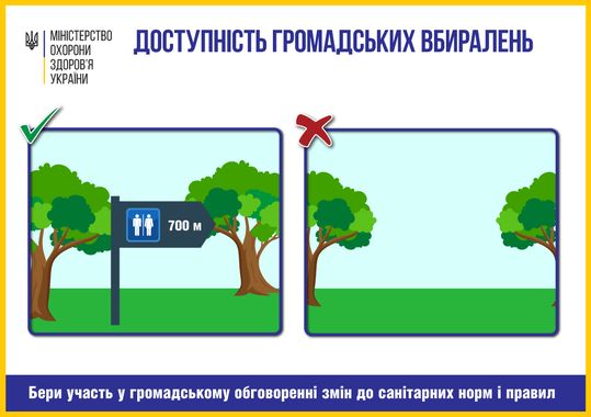 В каждой зоне зеленых насаждений, где гуляют люди, обязательно должен быть хотя бы один общественный стационарный туалет. Оптимальное расстояние между туалетами — до 700 метров, а в людных местах — до 300 метров. Туалеты предлагают оборудовать столами для пеленания ребенка и обеспечить доступ к питьевой воде. Выгребные ямы будут запрещены, вместо них предлагают локальные очистные сооружения (например, септики). Эти нормы необходимы для того, чтобы предотвратить попадание опасных веществ в почву и подземные воды, а также источники и колодцы.