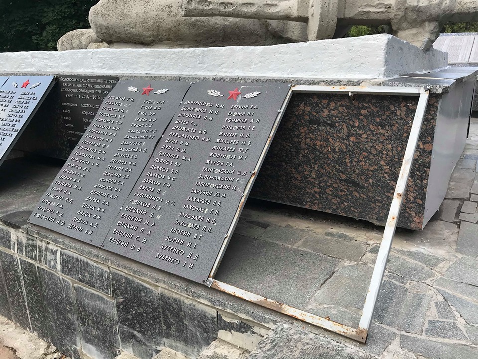 Сорванная плита с именами чугуевцев, которые погибли во время Второй мировой войны вызвала волну возмущения в соцсетях среди жителей Чугуева.