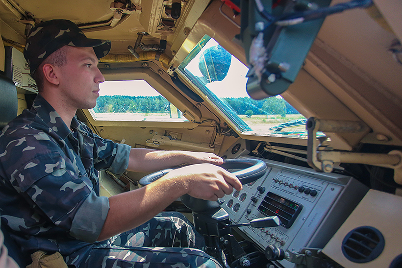 Кожен студент військової кафедри після дворічної підготовки, відпрацьовував водіння броньованої техніки на базі БТР – 4Е та БТР – 80. Під керівництвом інструкторів з водіння студенти з інтересом і завзятістю підходять до питань, що відпрацьовуються. Кажуть, що з усією серйозністю усвідомлюють, що набуті навички в будь-який час зможуть стати в нагоді.