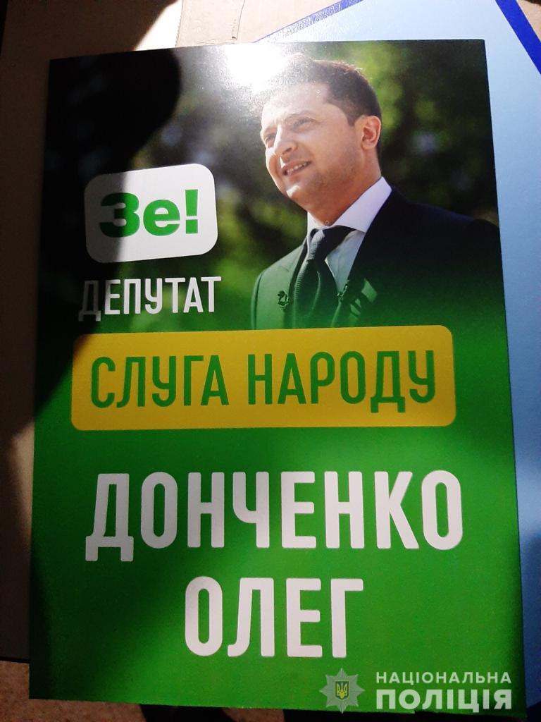 Полицией установлено, что в партии "Слуга народа" упомянутые два кандидата в народные избранники никакого отношения не имеют. А печатная продукция изготовлена с фальшивым информационным наполнением.