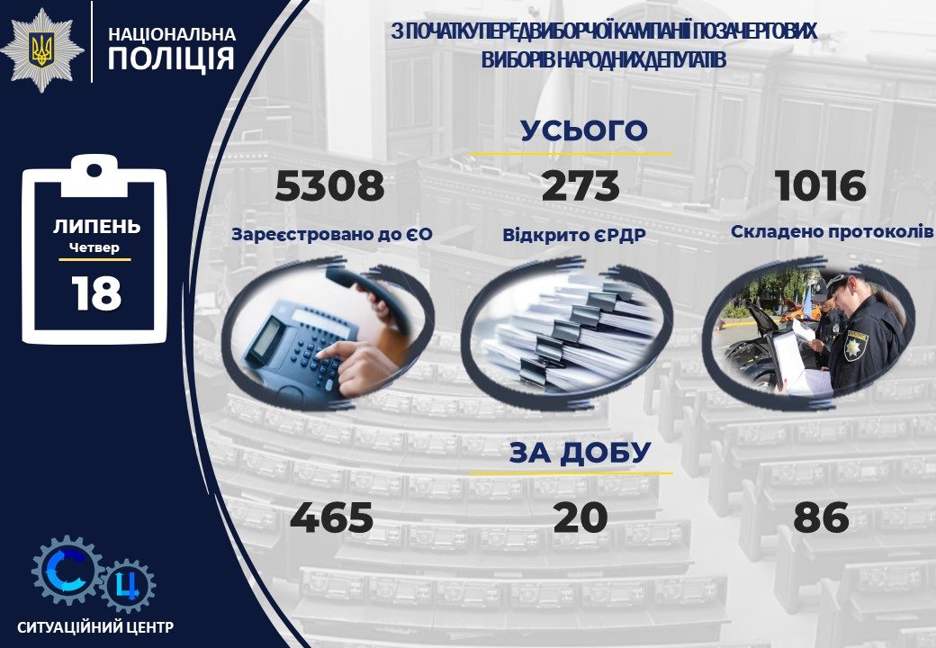 «Станом на 12 годину ми зареєстрували 5 308 повідомлень про здійснення правопорушень. За сьогоднішній день – 465 повідомлень. За минулу добу відкрито 20 кримінальних проваджень та складено 86 адміністративних протоколів», - сказав Зорян Шкіряк.