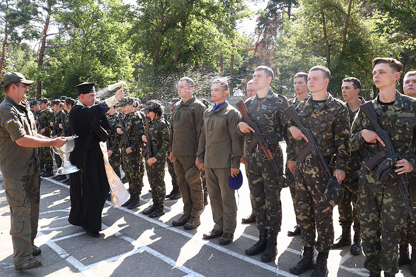 Священник православної церкви України, протоієрей, військовий священник Академії отець Григорій окропив молодших лейтенантів запасу та благословив на ратну службу.