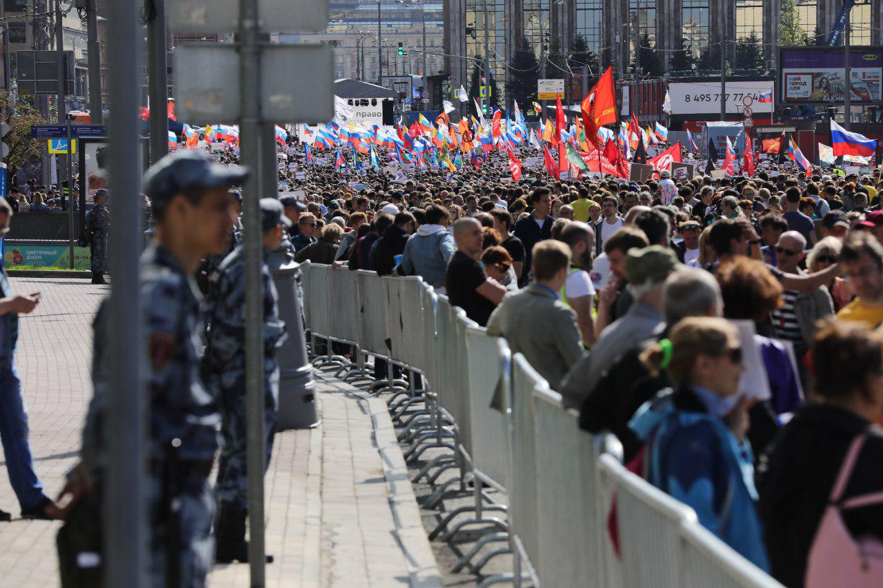 В Москве на проспекте Сахарова прошел митинг за допуск независимых кандидатов на выборы в Мосгордуму. По некоторым данным, в нем приняли участие 22,4 тысячи человек, по данным полиции, —12 тысяч.
