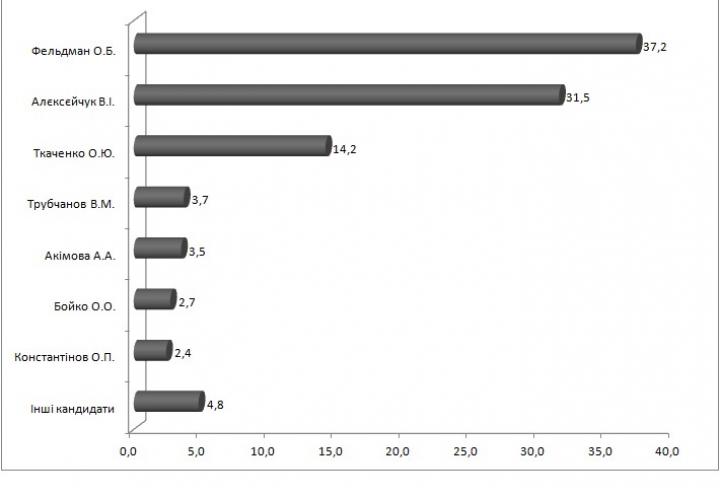 Второе место заняла Виктория Алексейчук от партии «Слуга народа» - 31,5%, на третьем – депутат Харьковского облсовета (фракция «Відродження») Александр Ткаченко - 14,2% голосов. Остальные кандидаты набрали меньше 5% голосов.