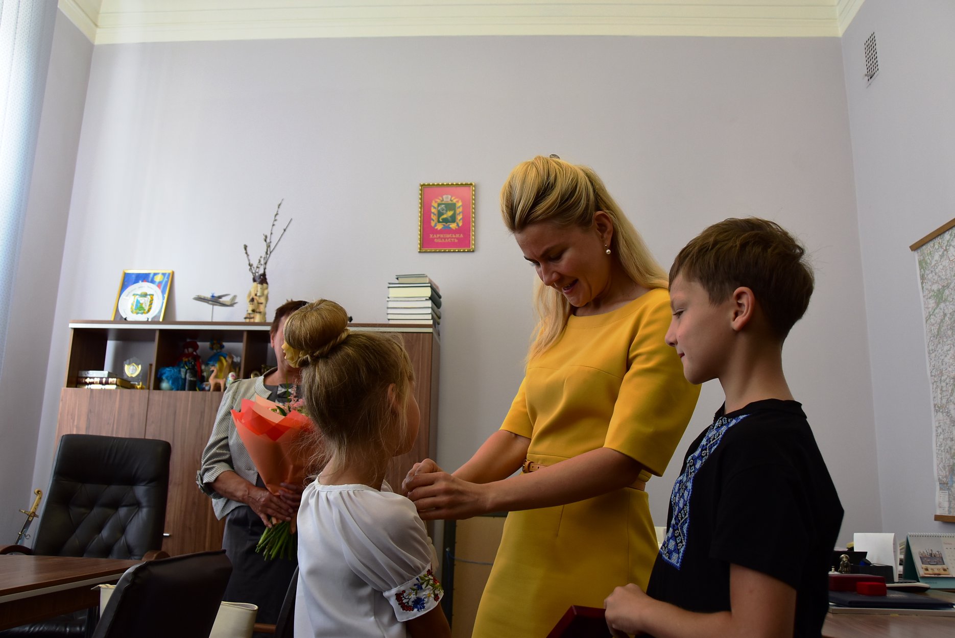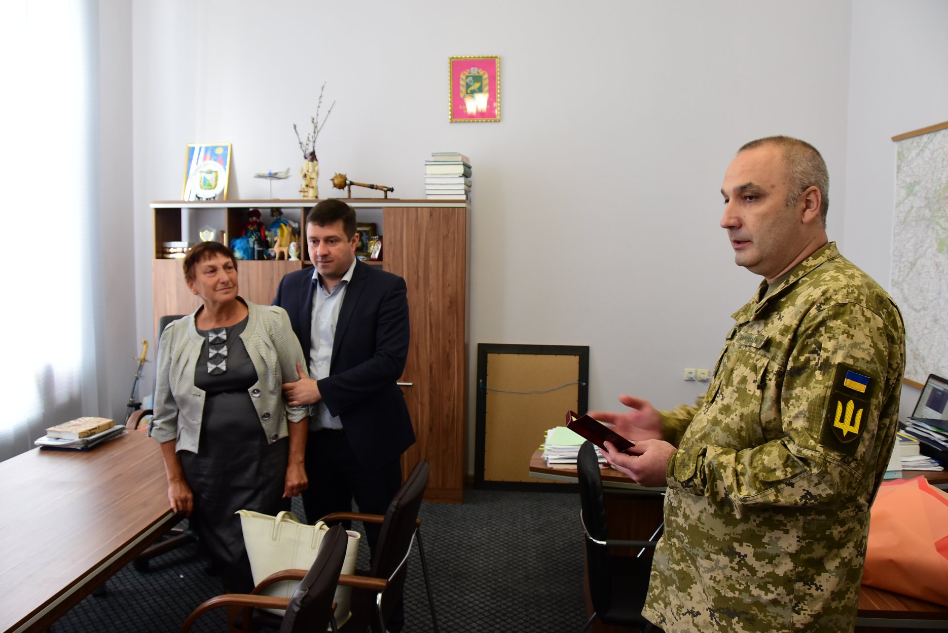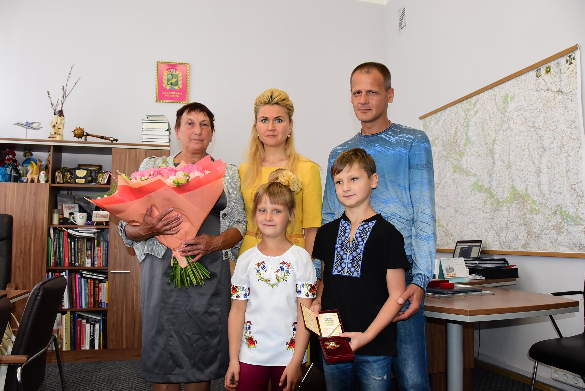 Сегодня в Харьковской областной государственной администрации в присутствии друзей и боевых товарищей павшей защитницы Украины высокую награду передали ее семье - маме, мужу и детям.