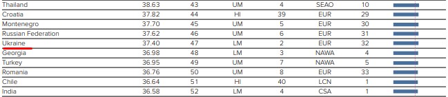 В свежем рейтинге Украина заняла второе место среди стран с низким уровнем дохода, уступив первую строчку Вьетнаму. При этом в прошлом году страна лидировала в этой категории. В общем списке Украина занимает 47 позицию, обгоняя Грузию, Турцию, Индию и Катар.